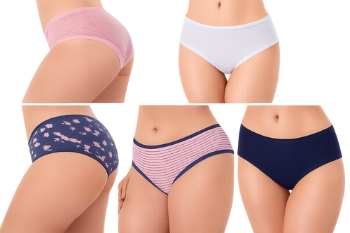 Wonnita Cotton Spandex Mid-Waist Hipster Panties Pack of 5 | Assorted Colors & Prints
